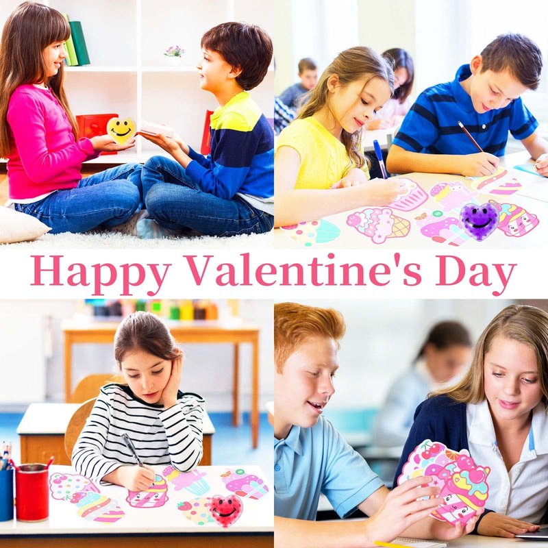 28 Pack Mini Valentines Stress Ball Toys with Valentines Day Cards for Valentine Party Favors Valentine School Classroom Exchange Gift