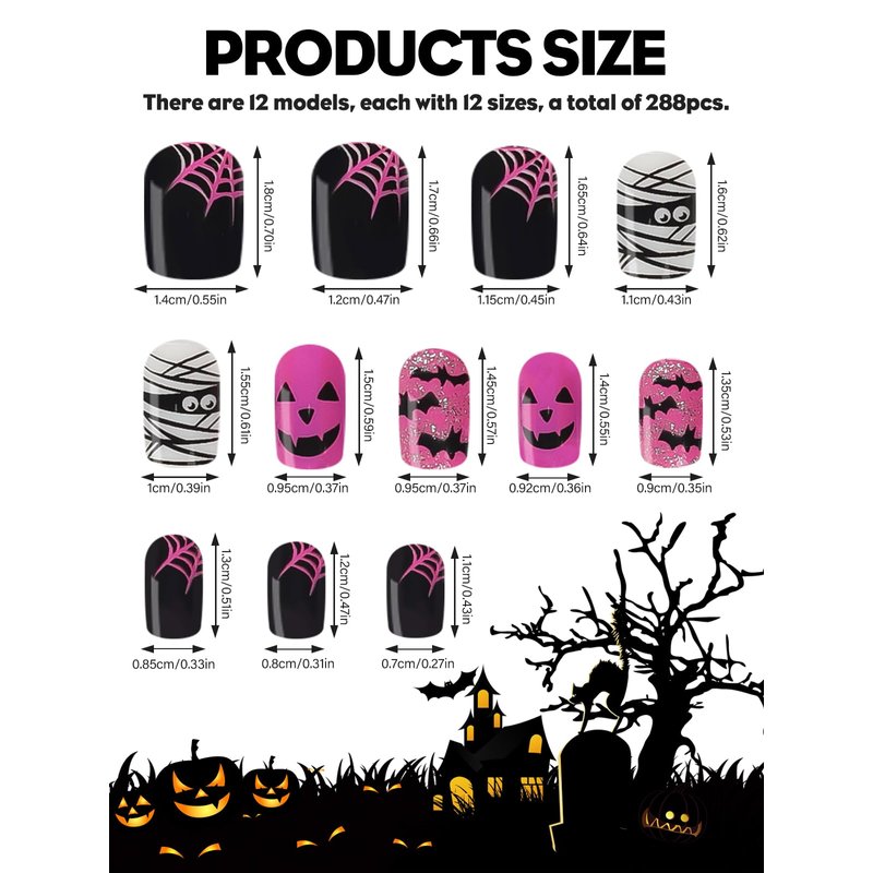 - Our Halloween press on nails come in different sizes, so you can choose the suitable size to fit your every finger.