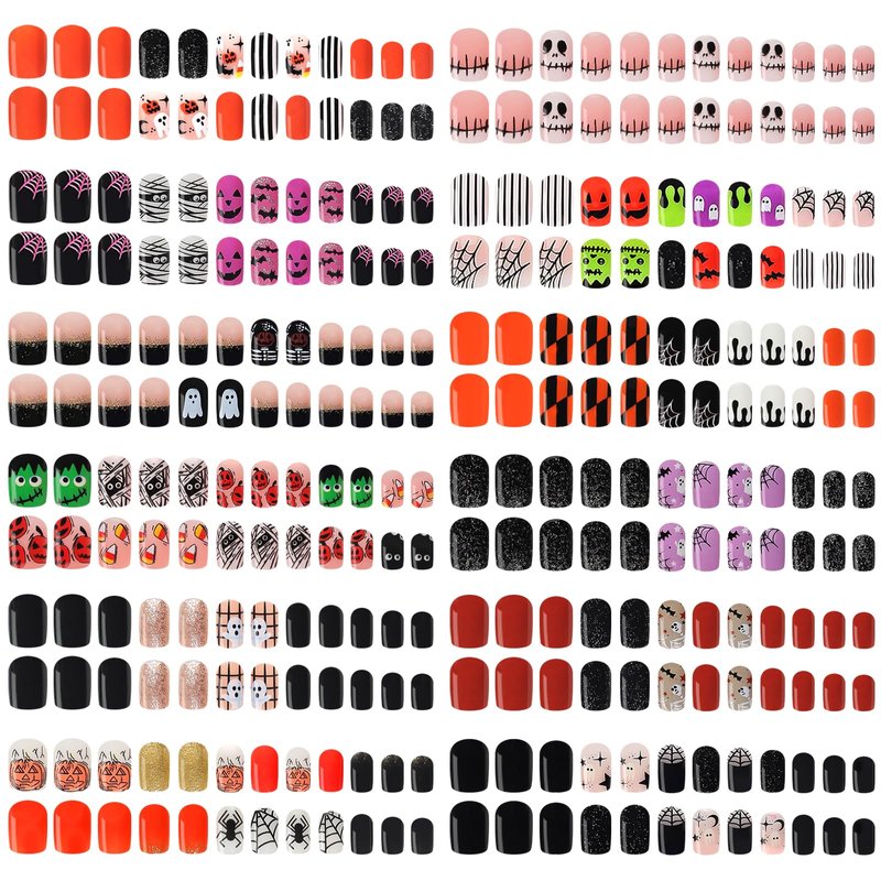 - π Halloween False Nails Set: You will receive 12 sets of Halloween fake nails with nail adhesive tabs, each set contains 24 pieces full cover false nails in different sizes, 288 pieces in total, assorted designs and enough quantity of false nails for you to create charming nail art styles.