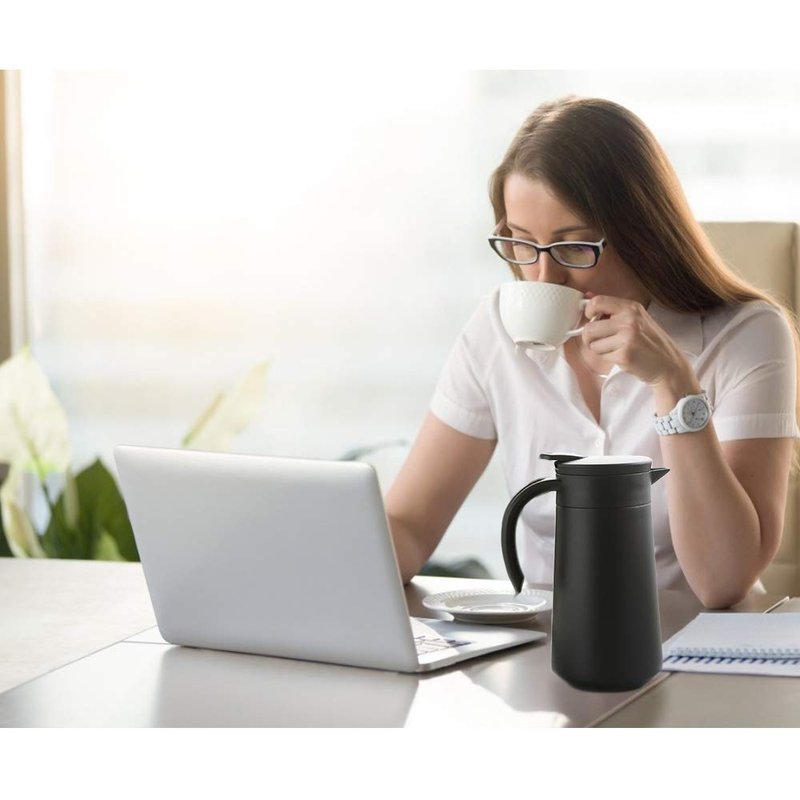 - ♚SINGLE HAND POURING, USER FRIENDLY: Pour spout opens easily when press the push button, making one-handed pouring of this thermal pot simple. It's safe to touch the coffee flask exterior body either it is a hot or cold beverage inside as the temperature is locked in and the carafe body stays cool.