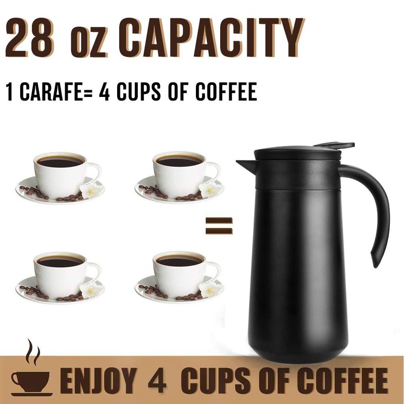28oz Coffee Carafe Airpot Insulated Coffee Thermos Urn Stainless Steel Vacuum Thermal Pot Flask for Coffee, Hot Water, Tea, Hot Beverage - Keep 9 Hours Hot, 18 Hours Cold