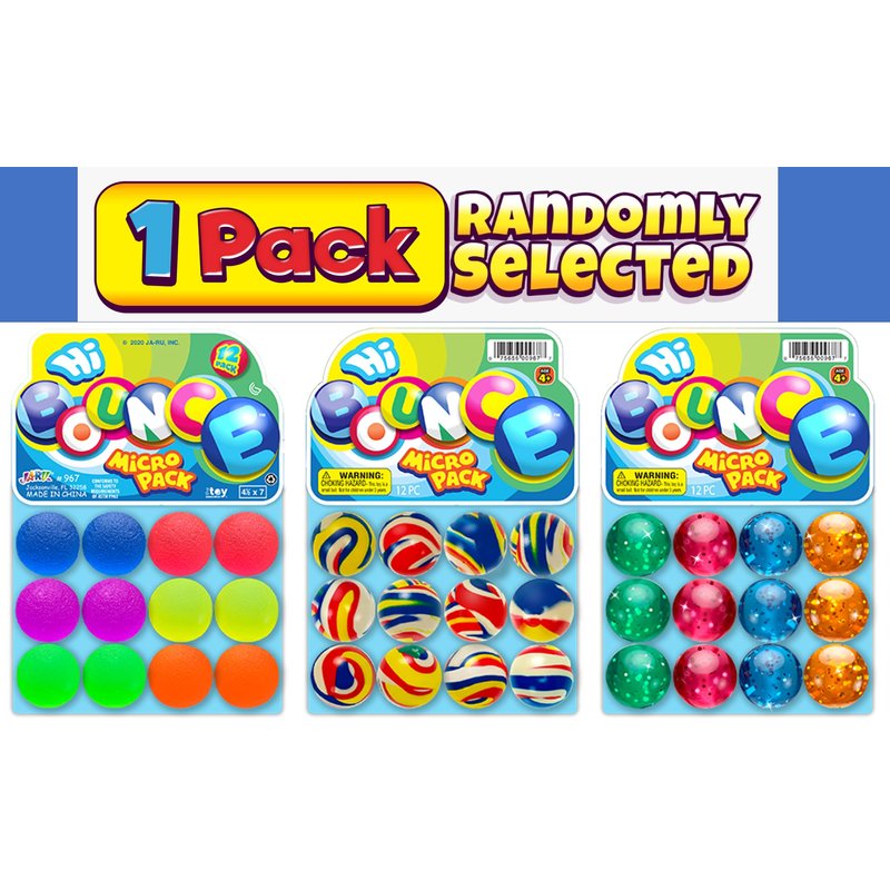 Keep your child entertained all day long with the Hi Bounce balls because they are made out of rubber and can bounce really high with little effort! Carry them everywhere with the micro pack. Imagine the face of your child when they see these colorful balls reach high up! Each pack comes with 12 balls so they can share with friends and play all day long. Includes 12 Hi Bounce Balls per pack for a great value.