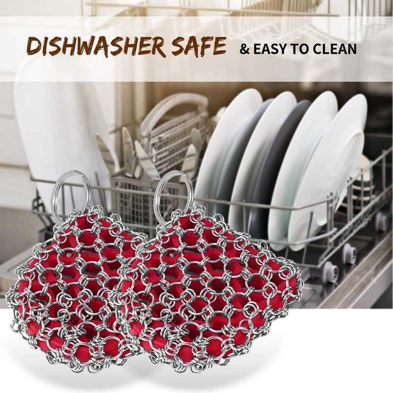 - 【Friendly customer service】Get this 2 chainmail scrubbers, return, replacement, refund is free regarding quality related issues. At Herda, you can buy with confidence for your cast iron pan,skillet, frying pan, baking sheet, griddle, dutch oven, pyrex, metal pot, carbon steel pan, pie pan and much more.