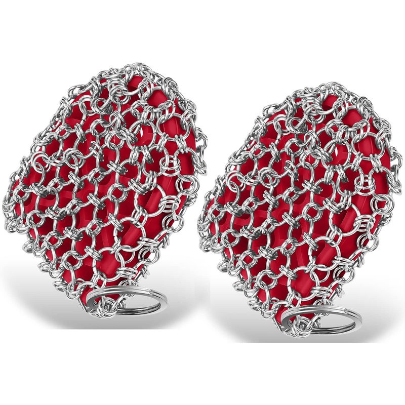 - 【Quality material】The 2pack chain mail scrub mesh was made of 316 stainless steel, no rusting, smooth,machine crimped, built for strength and have a long service time. Smooth stainless steel ring will not hurt the seasoning.