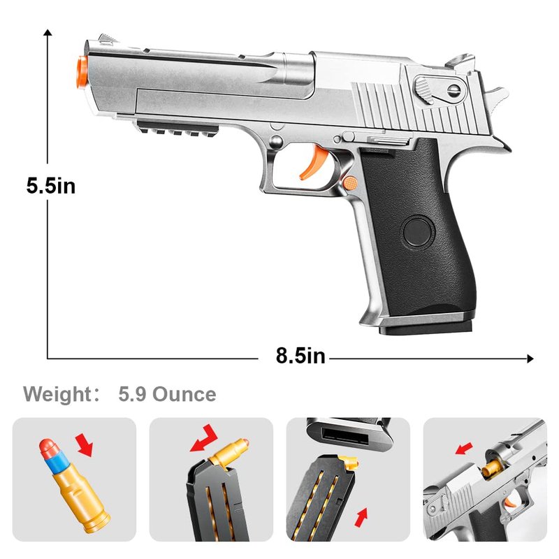 2Pack M1911 EVA Soft Foam Ejection Toy Blaster, Shooting with Foam Darts, Shooting Games, Backyard Fun and Outdoor Games, Education Toy Model for Boys Girls Halloween Christmas Ages 8+ (Black+Silvery)