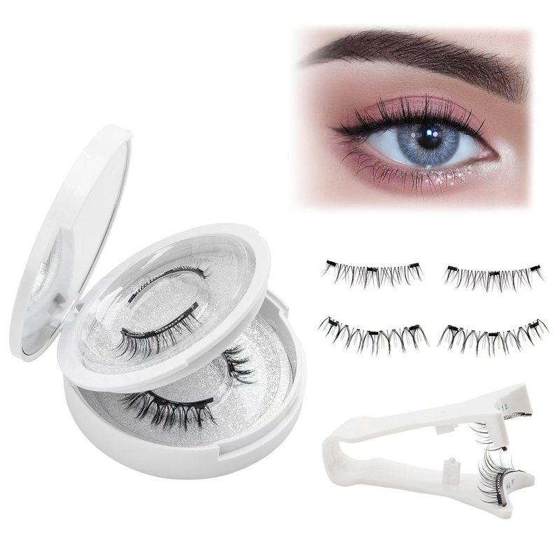 2pair Magnetic Eyelashes, Natural Look, Reusable, 11MM, No Glue, No Eyeliner, Clear Band, False Eyelashes with Applicator
