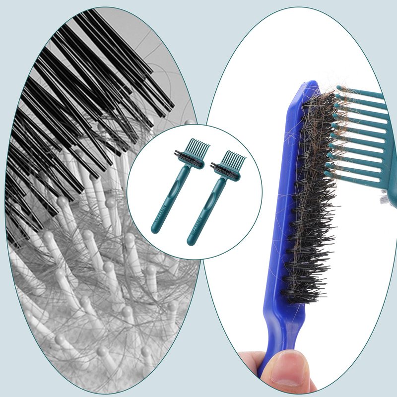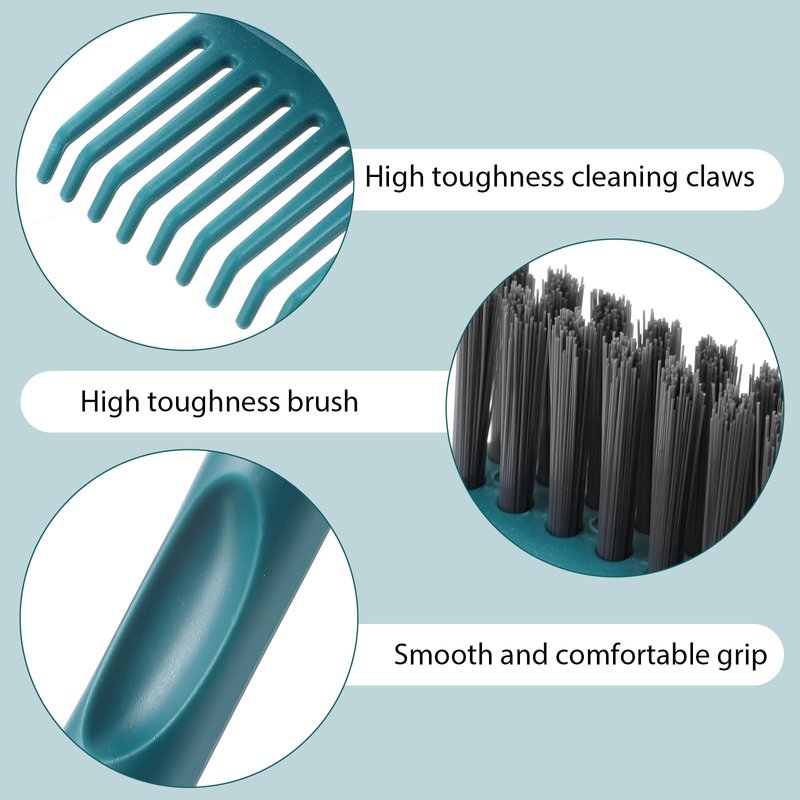 - 【Two-In-One Design】The hair brush cleaner has a double-sided design, combining two essential cleaning tools into one, making cleaning more convenient. The high-toughness cleaning claws can easily remove hair entangled in the comb teeth, while the high-hardness bristles can quickly remove grease and dirt stuck between the comb fibers.