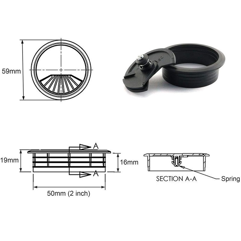 - Package and Quantity: Pack of 2pcs 2 inch black Desk Grommet Hole Cover,suitable for 2 inch (50mm) hole.