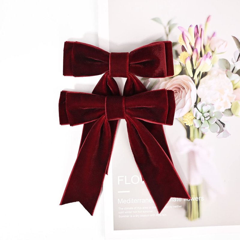 2PCS 5" Velvet Red Wine Hair Bows Girls Hair Clips Ponytail Holder Accessories for Women Girls Toddlers