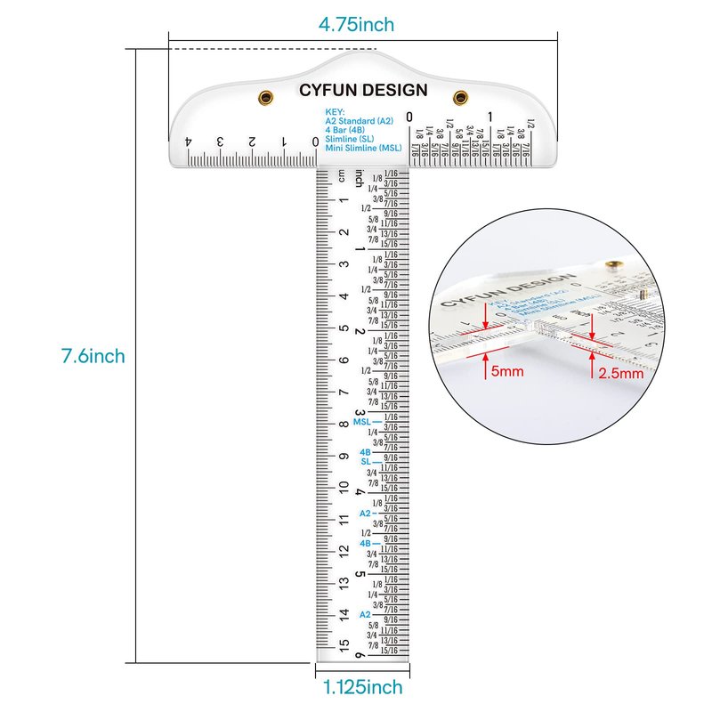 - PACKAGE INCLUDES: 2 pieces T-Shape transparent rulers in one package, the size of this ruler is 7.6x1.25x4.75inch 5/2.5mm in thickness,measures range is 6 inches/ 15 cm