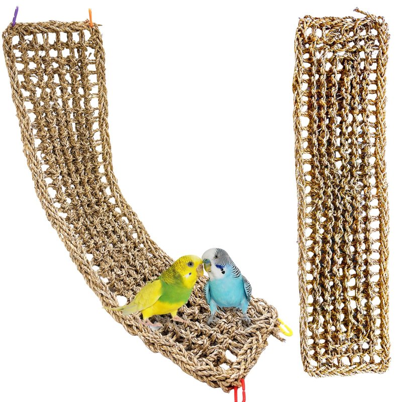 This seagrass mat can be easily transformed into a rope ladder or hammock for your parrot's enjoyment.The included hooks allow you to conveniently attach it to the cage, creating a cozy hanging woven hammock bed that your bird will adore.