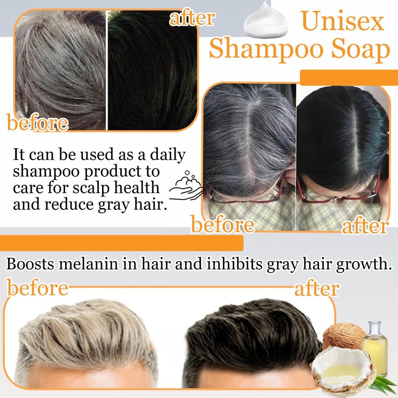 - šćCover Gray HairćBlack shampoo bar soap is made of high quality formula, it can well help you to reduce the trouble of growing gray hair, after using this black hair soap, you will have darker and shinier hair and look younger.