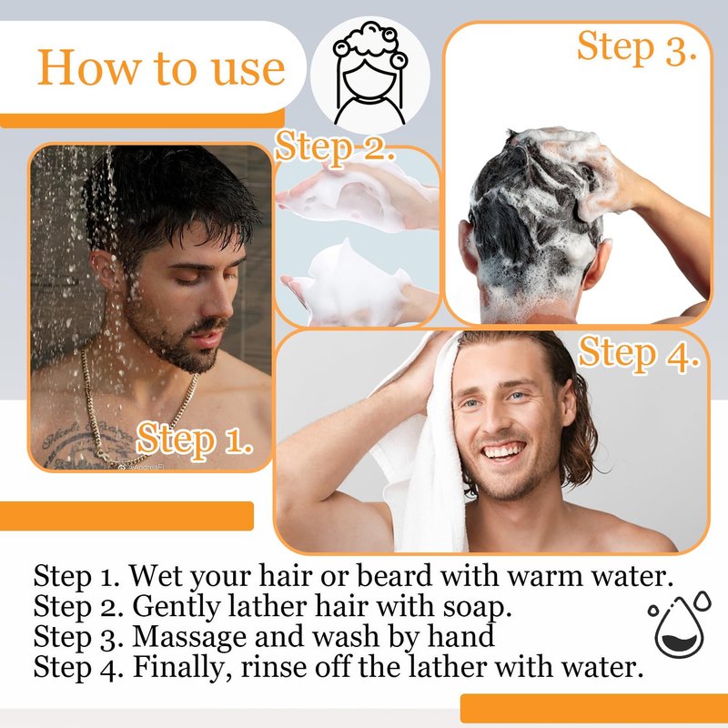 - šćUsagećWet your hair with warm water first, then use black shampoo bar soap for gray hair to rub gently on your hair to produce foam, then gently massage your scalp with your fingertips for 3-5 minutes, and finally wash with water. Long-term use of the effect is better.