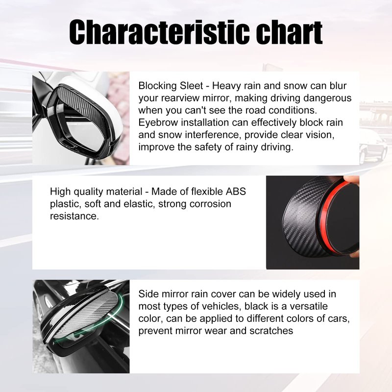 - 【Practical and Beautiful】Car rearview mirror rain cover can effectively prevent mirror scratches and scratches, protect your car rearview mirror, driving in rainy days without seeing the rearview mirror is a big hidden danger to our safety, he weatherboard helps keep out the rain, giving you a clearer rear view, it is practical and beautiful.