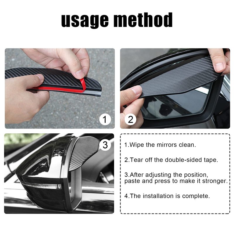 - 【Easy to Install】Our rearview mirror rain cover have tape on the back, the mixed adhesive is very sticky but does not leave marks, please pay attention to clean the rearview mirror before sticking and installing it when it is dry and dust free.