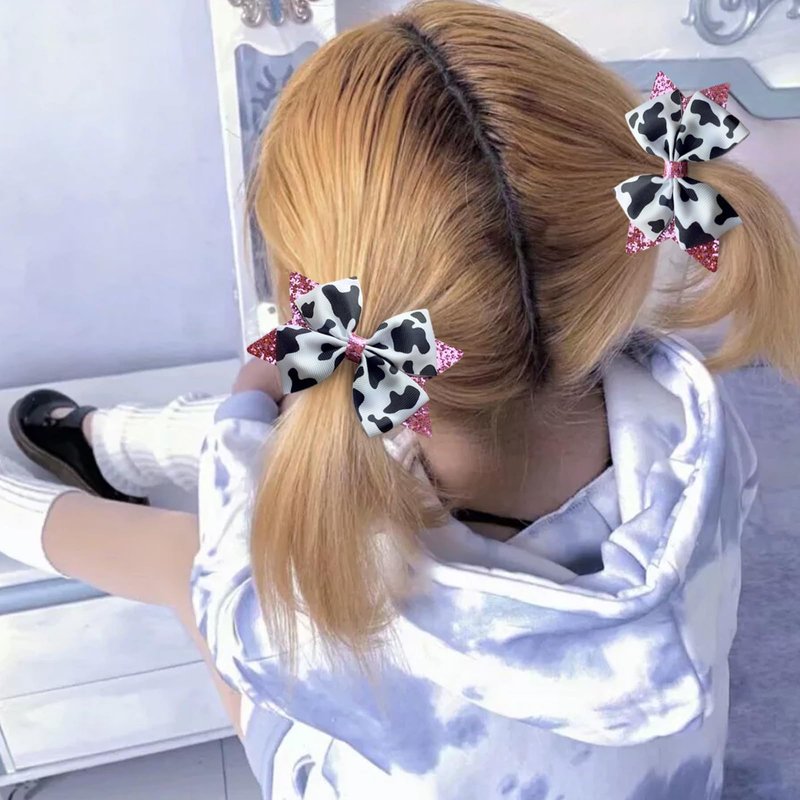 - Girls Hair Bows Size: The cow print hair clips approx 5*8 cm.The hair bows clips for baby girl are universal in size,whether you tie up your hair or not, you can use the cute bow hairpin, good choice for toddlers, girls, teen girls, women and mommy, a good hair accessories for girls child kids ponytail