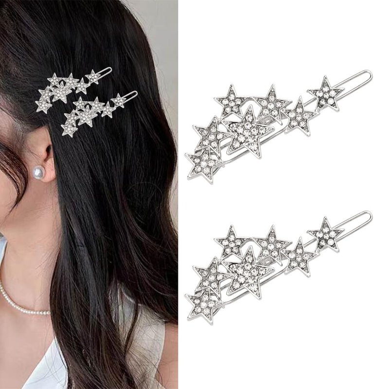 - Fashion Crystal Hair Pins for Women: This 2 pieces silver stars hair clips for girls women can be amazing sparkle hair clips for women, geometric hair pins for thin hair, stylish crystal hair accessories for girls women, which never go out of style and must be a cute decorative hair barrette, novelty diamond hair pieces for women, cz decorative hair clips for curly hair, bling star hair clip glitter metal