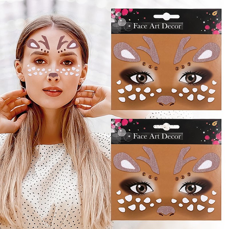 - 【Cute Design】The design of the little deer makes this animal face sticker look very cute, coupled with small sequins and gemstones, making the face patch more exquisite and very popular among children