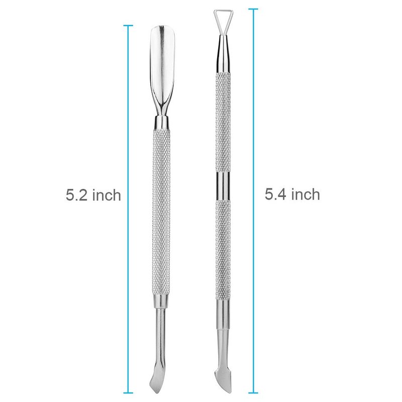 - [2-in-1 Double Ended Cuticle Pusher Tool] Cuticle pusher flat head: Push down cuticles around nails or push the polish gel residue after removing; Cuticle pusher curved head: Remove the dead skin on nails, or remove the false nails.
