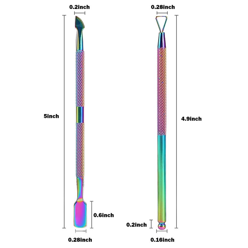 - ❤Easy to Use❸ :Cuticle pusher flat head:push down cuticles around nails or push the polish gel residue after removing; Cuticle pusher curved head: Remove the dead skin on nails,or remove the false nails pusher tool,clean the dirt under nails or remove the false nails;
