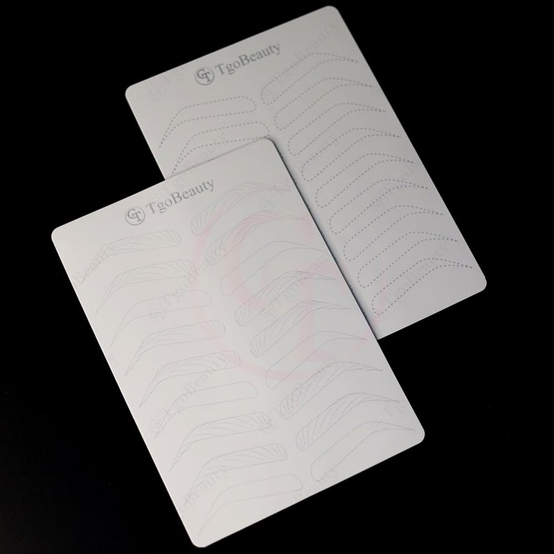 Features: Item Name: TgoBeauty Brow Permanent Makeup Practice Skin Material: Silicone Skin Color: White Shiny Silver Outlines Thickness: 1.5mm Double Sided Printed Front Side: 9 pairs empty eyebrow shapes with thin tracer dots Back Side: full hairstroke brow frames with 3 different common patterns Can be used to practice any brow technique. Level up your nano hair stroke technique. Package: 2pcs X White Brow Permanent Makeup Practice Skin