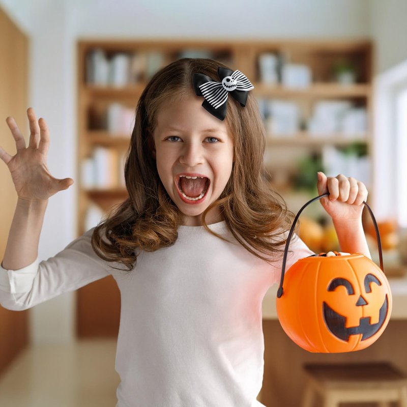 2Pcs Ghost Skull Hair Bows Black White Striped Ribbon Hair Clip Christmas Halloween Costume Accessories Party Decorations for Jack