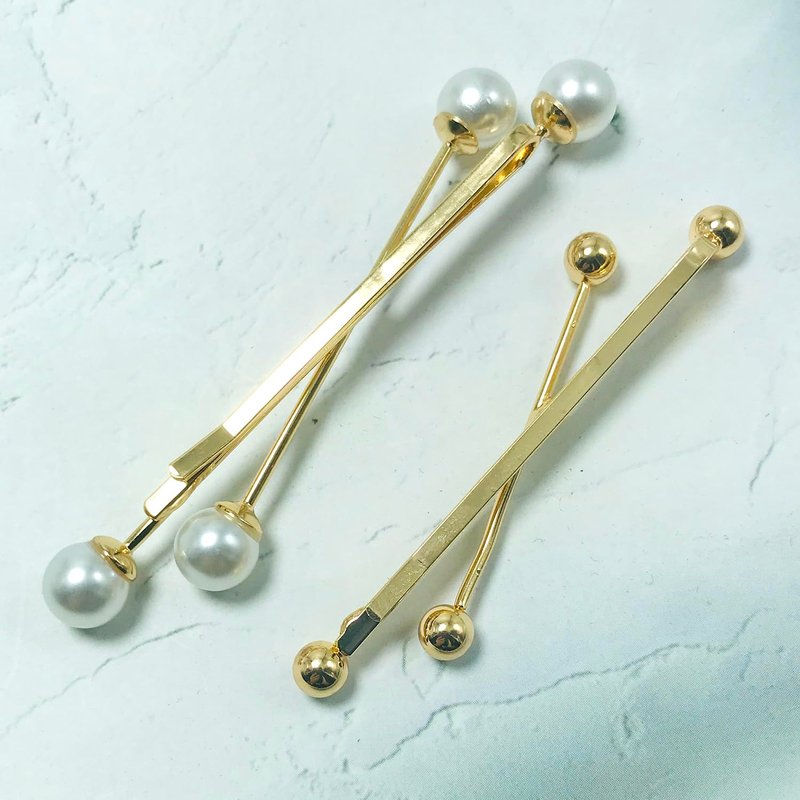 - Color:Gold; Pearl hair bobby pin size: 6.8x1.2 cm/2.7x0.5 inch(Length x Width); Round metal clip size: 5.6x1 cm/2.2x0.4 inch(Length x Width); Weight:8 Gram(2 pieces)