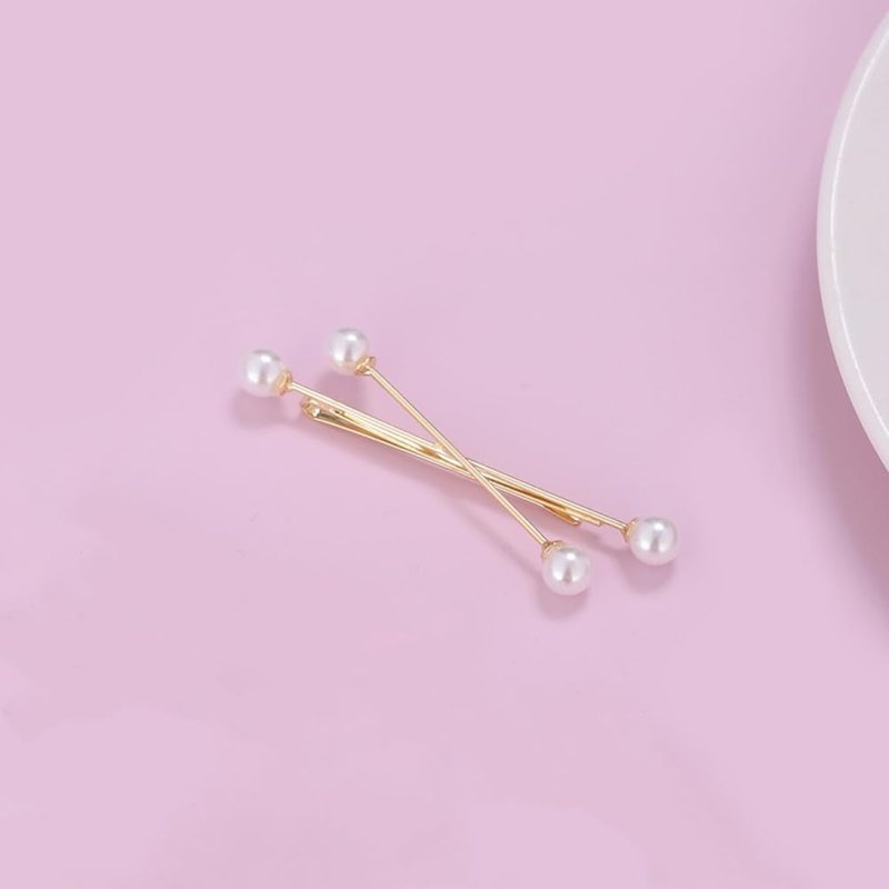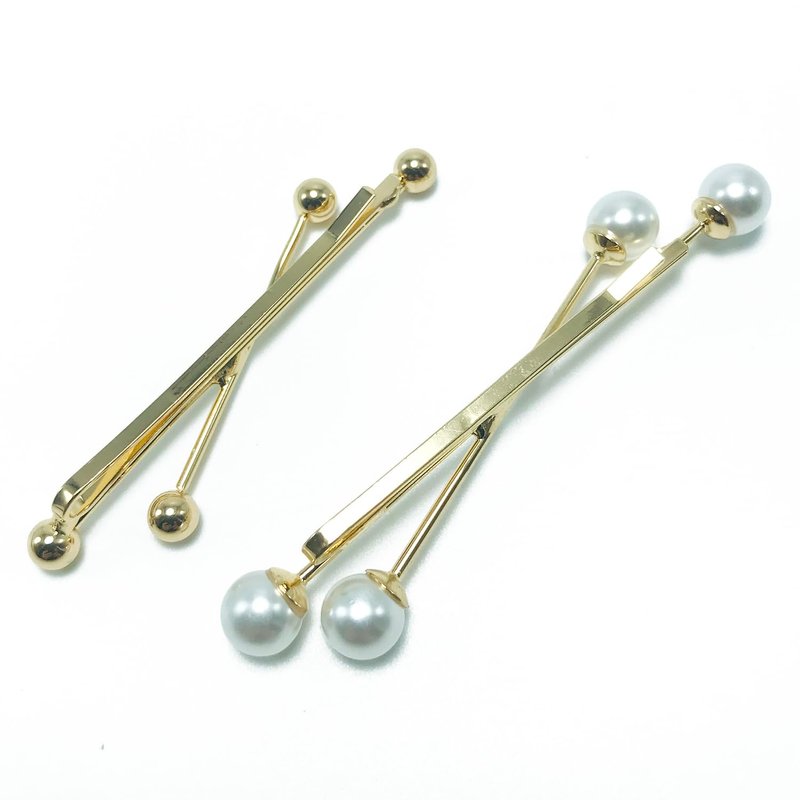 2PCS Gold Metal X Shaped Hair Pins Decorative Fancy Hair Clips Bridal Pearl Hair Barrettes Wedding Side Clips Hair Accessories for Women Lady