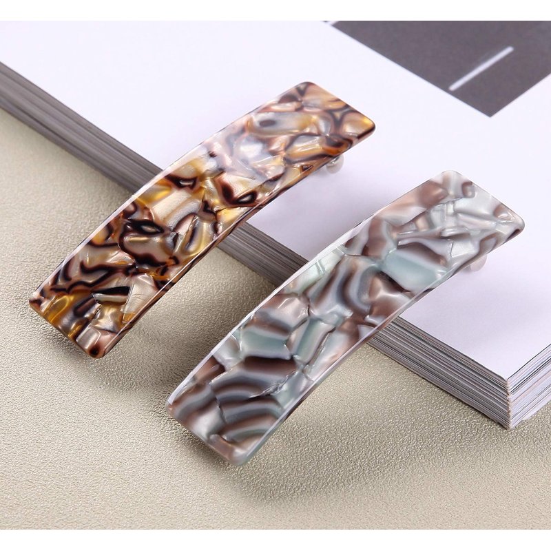 2PCS Hair Barrettes Tortoise Shell French Design Celluloid Rectangle Hair Clips for Women