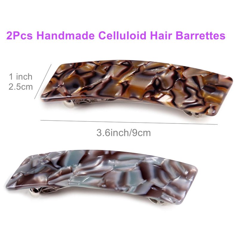2PCS Hair Barrette Clips Handmade French Design Celluloid Rectangle Exquisite Hair Clips Classic Hair Accessories for Women Ladies thin fine hair