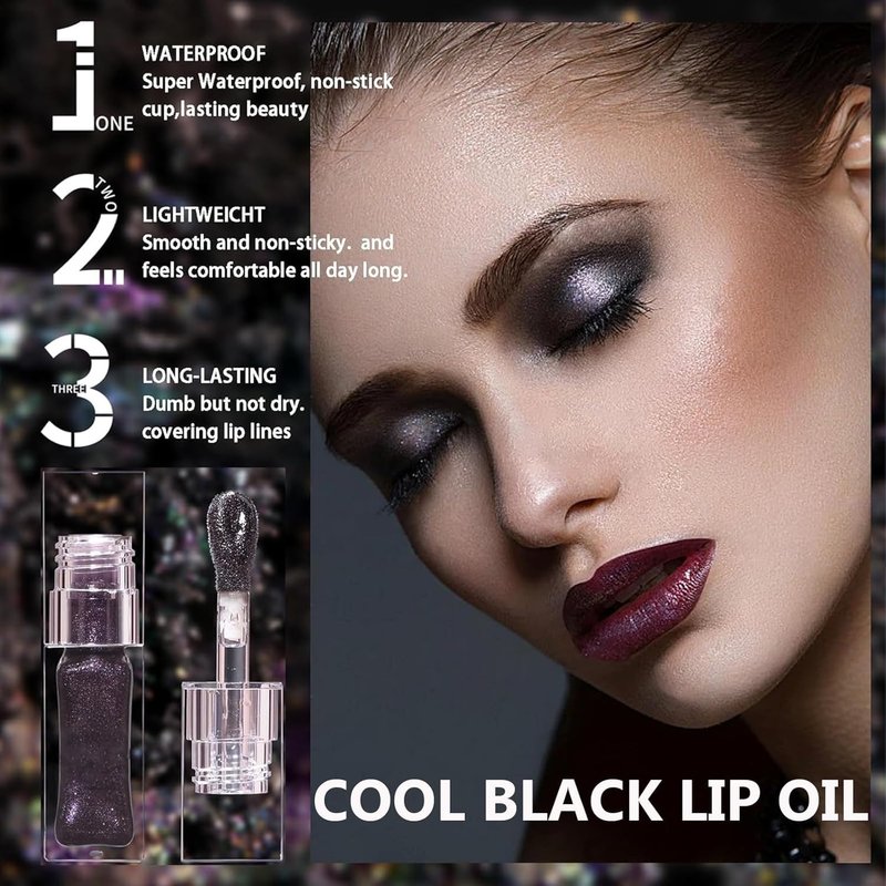 2PCS Magic Black Color Changing Lip Oil,Warm Change Glitter Lip Gloss, Color Changing Lip Oil V2, Color Changing Lip Gloss, Moisturizing Plumping Clear Lips Oil Tinted Lip Plumper Lips Care