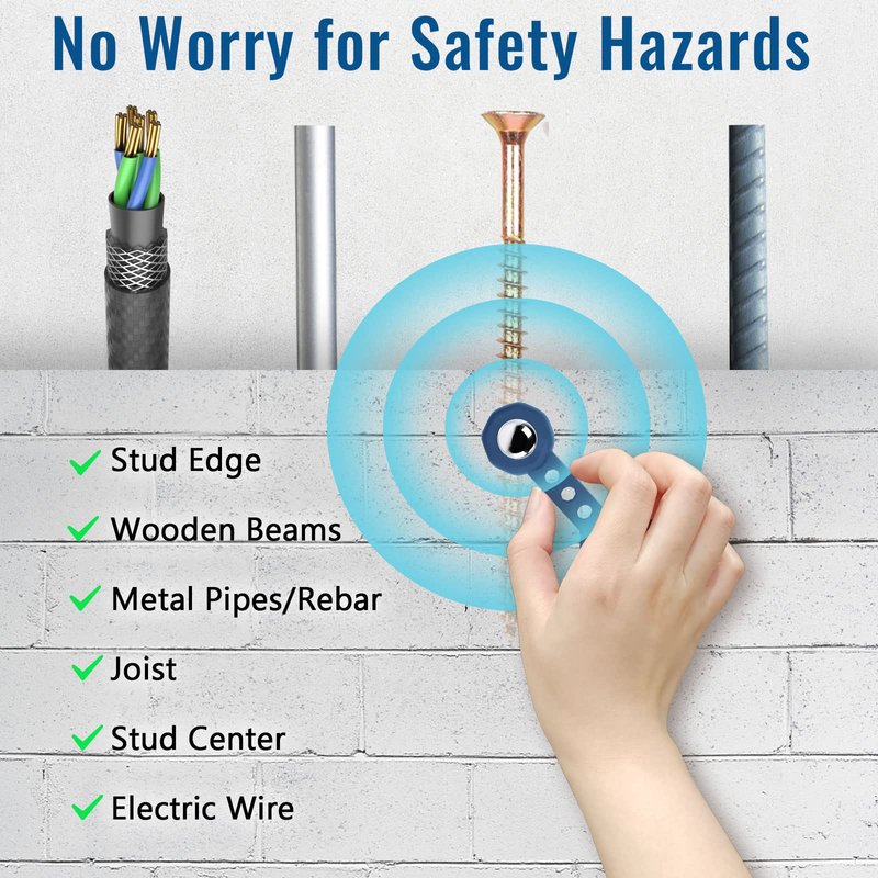 - 【Fast Positioning】The stud ball with 5400 gauss magnetic force can quickly and accurately find studs on drywall, without any marking or reading on the wall, and can be directly constructed. Helping you avoid danger when mounting TVs, cabinets, garage racks, etc.
