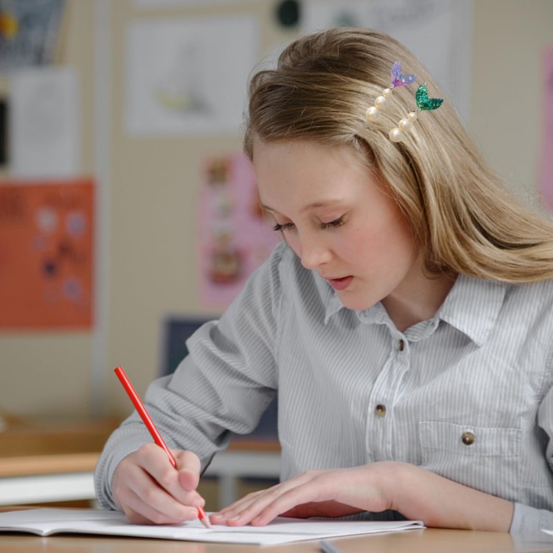- Mermaid Tail Design: Mermaid barrettes are designed in the 3D shape of mermaid tail ,decorated with white artificial pearls ,exquisite and sparkling, wearing it will make you look so charming and eye-catching