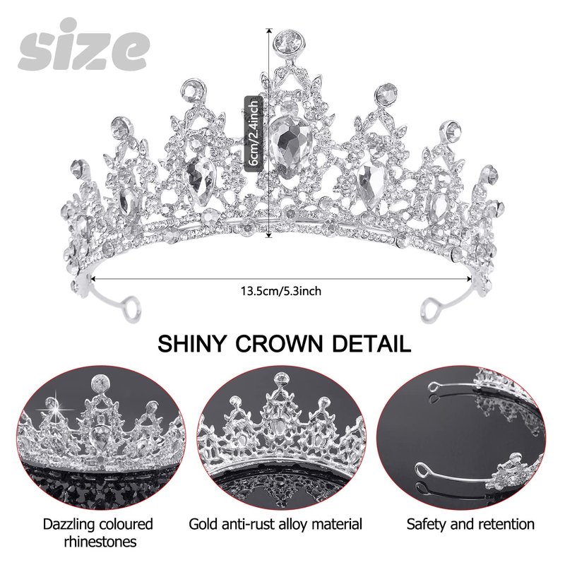 - ♛【Prom Queen Tiara】The tiara headband is Made of durable hard alloy and rhinestone. Alloy is with diamond look and hard texture for practicality and aesthetics.Two combs located on both ends of the crown which can grip the hair more tightly, preventing the slipping of the headband.