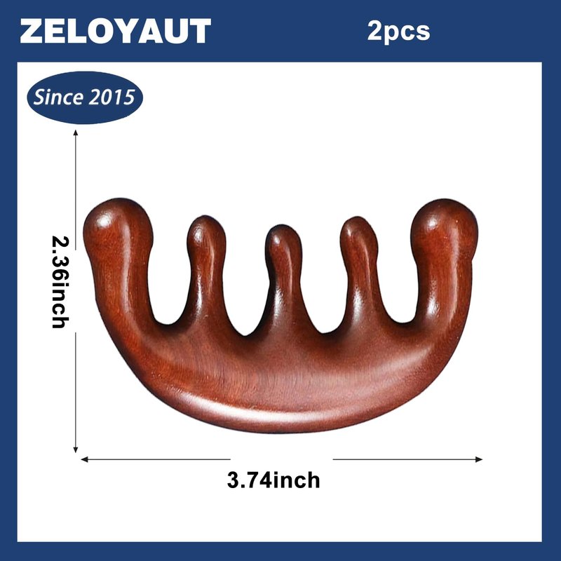 2PCS Rosewood massage hair comb, wide teeth solid wood household small five teeth comb to relieve your stress and fatigue
