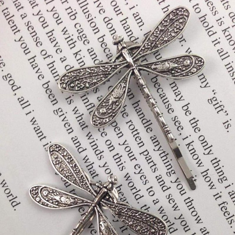 2Pcs Silver Dragonfly Hair Clip Wedding Retro Antique Barrette Bridal Headdress Color Head Wear Styling Hair Accessories for Girls Women Ladies Bobby Pins Hairpins French