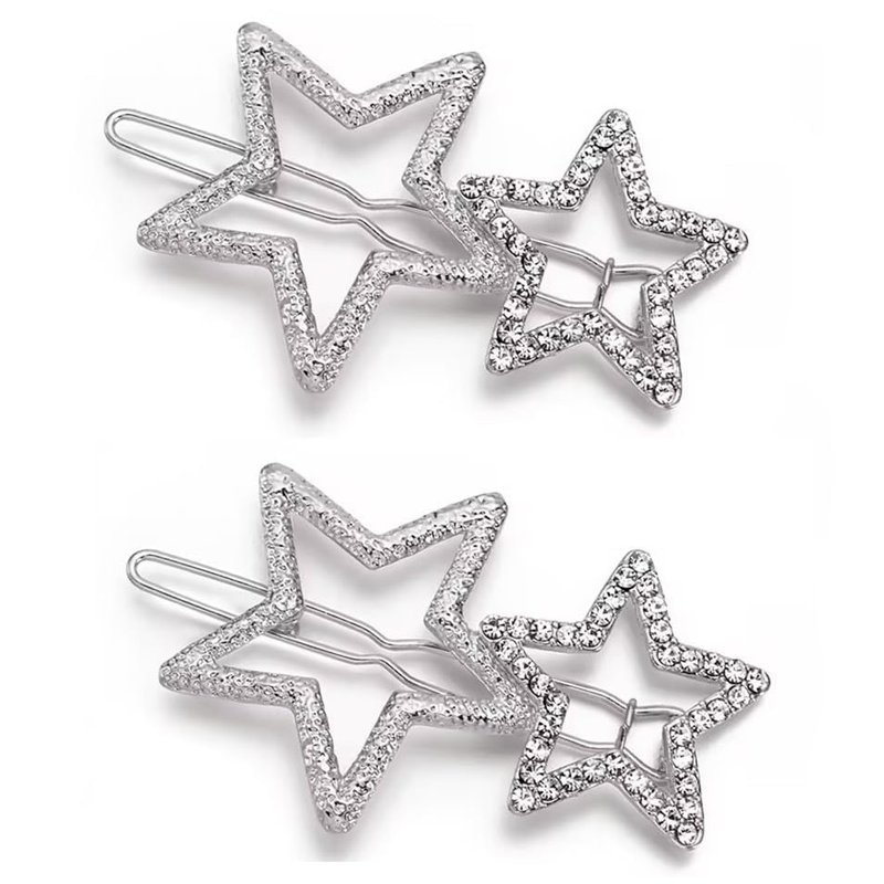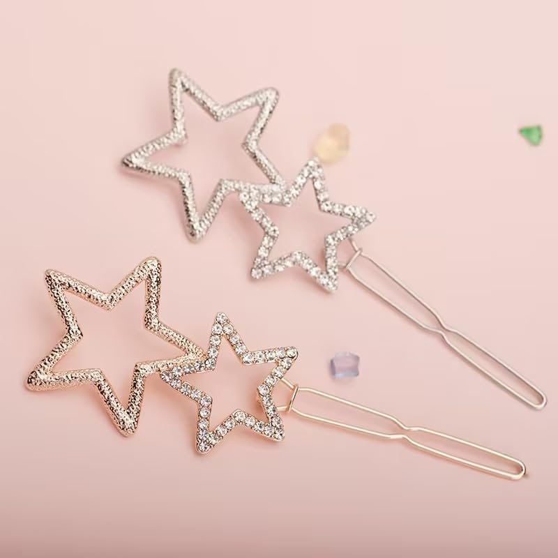 2Pcs Silver Hollow Star Hair Clips, Non-Slip Metal Geometric Hairpin, Elegant Rhinestone Hair Barrettes for Women Lady Girls Styling Hair Accessories Clips and Barrettes