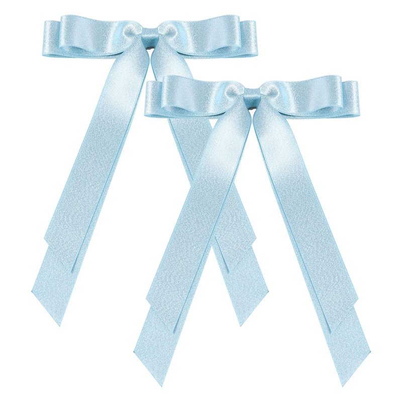 2Pcs Tassel Ribbon Hair Bows Clip with Long Tail for Women Girls Thick Thin Hair,5.5in Big Light Blue Solid Silky Satin Ribbon Ponytail Holder Outfits Dress Decoration Accessories