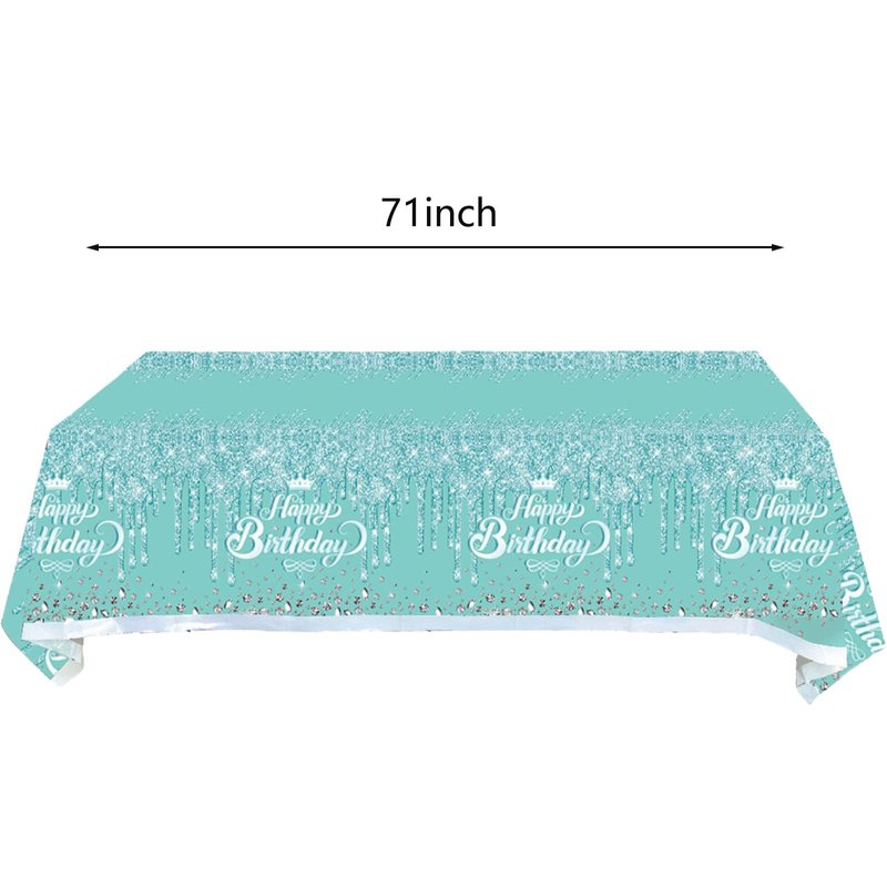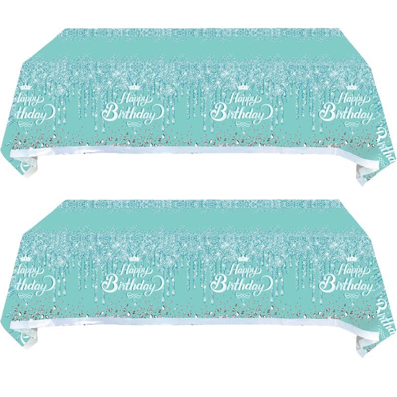 2Pcs Teal and Silver Birthday Tablecloths Decorations, Teal and Silver Party Table Cover, Teal and Silver Birthday Party Supplies Decorations for Girls Women Silver Glitter Party Supplies (71Inx 42In)