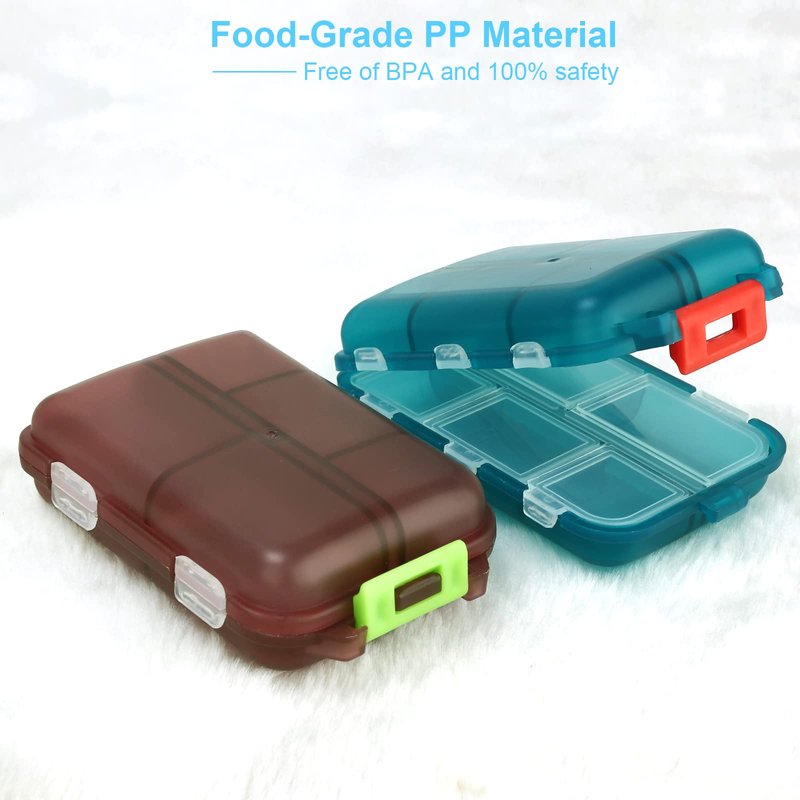 - Good sealing - keep pills quality: With secure lid on each compartment of mini pill box, each lid can open or shut via clasps individually. The closing lid is air-proof and keep your medicines in good condition