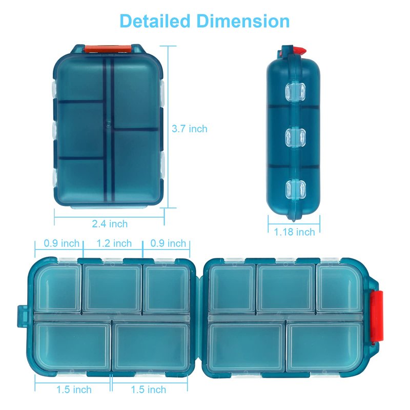 - Compact design - high capacity: The travel pill organizer has 10 individual compartments on both sides, there are 2kinds of compartments for your different amounts of pills