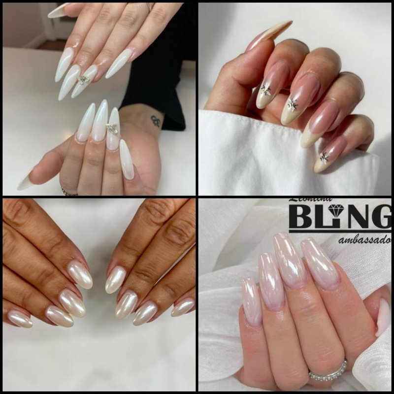 - 2 Boxes Clear Chrome Nail Powder: The white chrome powder for nails set contains 2 boxes moonlight pearl gel chrome powder, 2pcs sponge eyeshadow stick. This pearl chrome nail powder is the latest style of 2024. It will not cover the original color of the nail gel polish, and the glittering shiny is revealed after use.