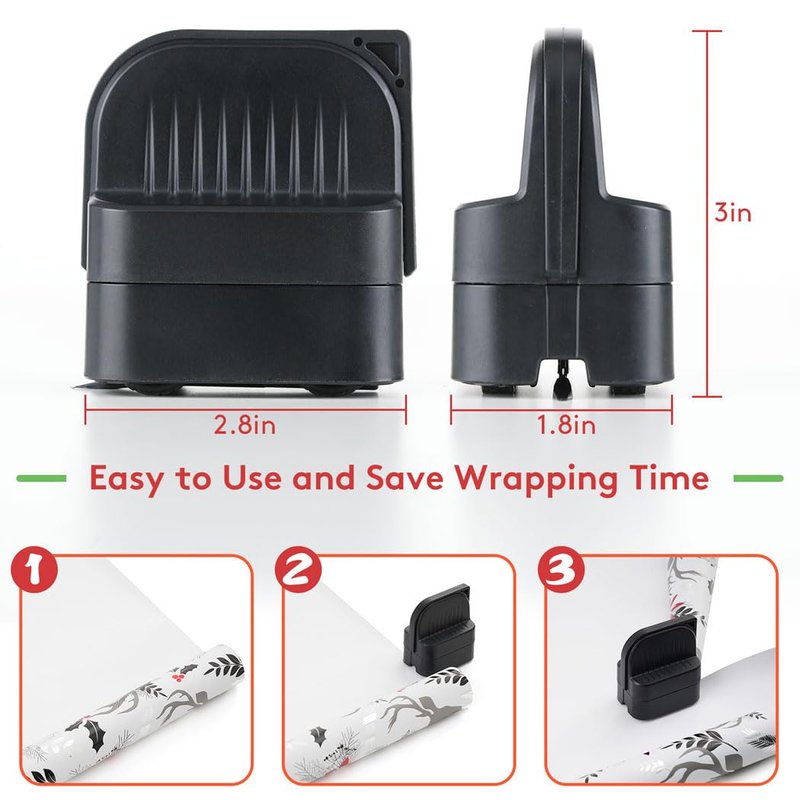 - 【Innovative 4-wheel Stable Design】Innovative and unique 4-wheel base, this Christmas gift wrapping paper cutter is firmly positioned on paper like a caliper, making the cut paper flat and straight, even women and kids can easily cut smooth and straight gift wrapping paper.