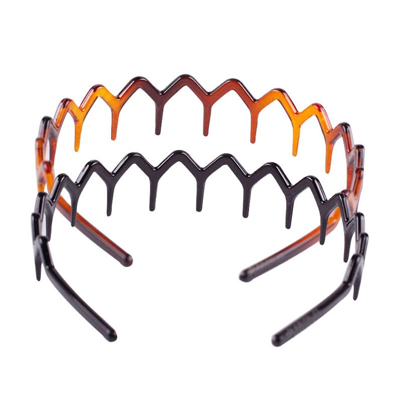2pcs YAFIYG Zigzag Headband Plastic Wavy Tooth Sharks Tooth Hair Comb Headband for Women's Girls Men Hair Accessory(1 Black Color+1 brown)