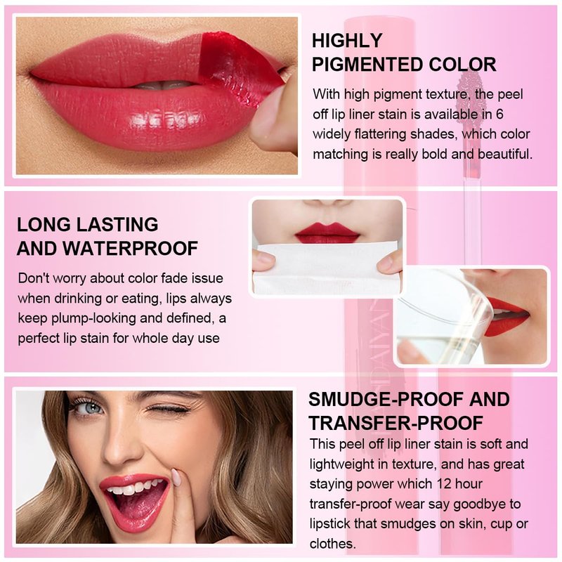 - 💋【Convenient use method】Clean and moisturize the lips before use, apply a layer evenly, wait for a few minutes to dry and form a film, and slowly peel off the film after it is completely dry to have a smudge-proof semi-permanent lip gloss.