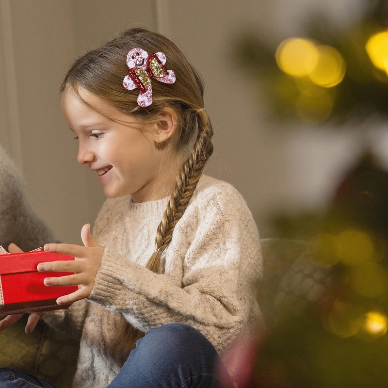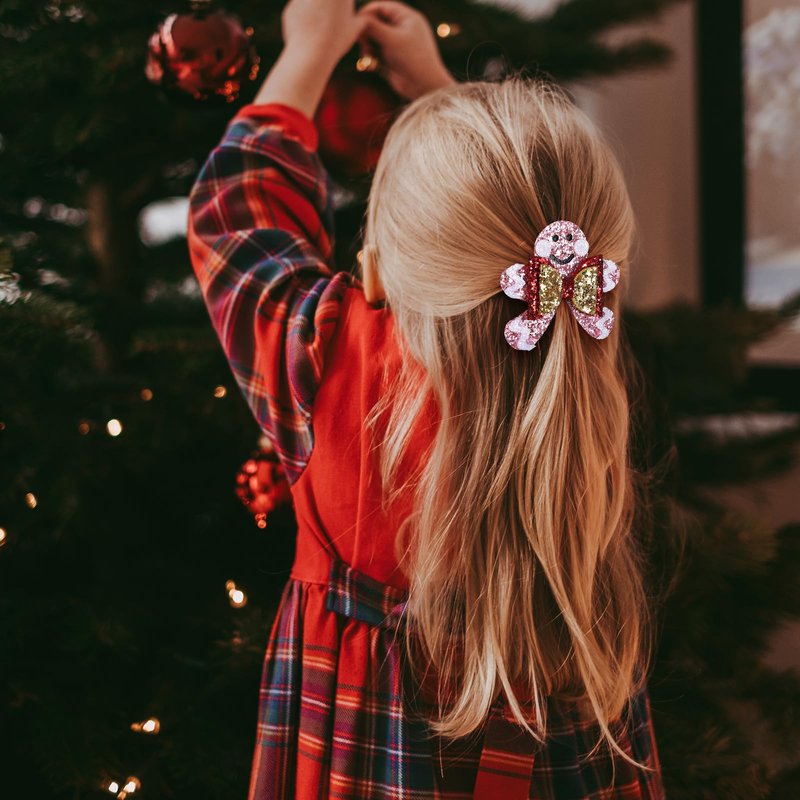 Great Holiday Gift: This glittery Gingerbread Man hair clip makes a thoughtful Christmas gift,fun holiday gingerbread house kit festive activity decorations or stocking stuffer for anyone who loves festive accessories, adding a playful and sparkly touch to their holiday wardrobe.