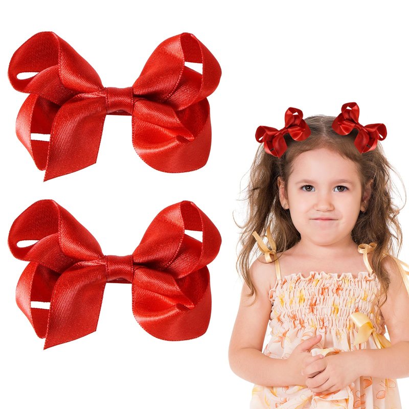 - Perfect Size Glittery Ribbon Hair Bows- Dainty sparkling and pretty red ribbon hair bows at nice size: 3 inch; solid ribbon lined metal alligator clip,safe and comfort to hold her thick, thin,curly,straight,wavy,long or fine hair well,easy to put in,won’t tug or pull hair! Add pizzazz to her Ponytail, Bun, Half up-do, Braid, Side Ponytail hairstyle.