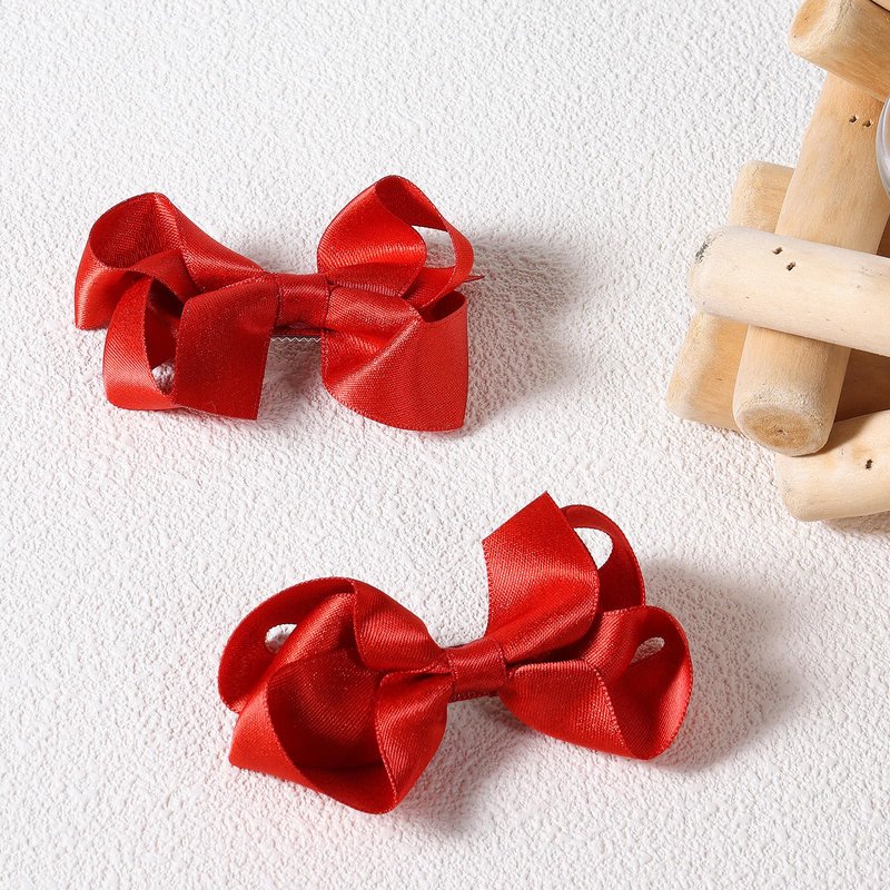 - Small Cute Shiny Glitter Ribbon Hair Bows Gift Set Red - 2pcs very trendy and adorable sparkly ribbon bow-knot hair clips,well hand-made of soft solid stain silky ribbons,shiny red color with a touch of gold sparkle! adds so much unique to your look! go with every daily or holiday outfit for your girls!