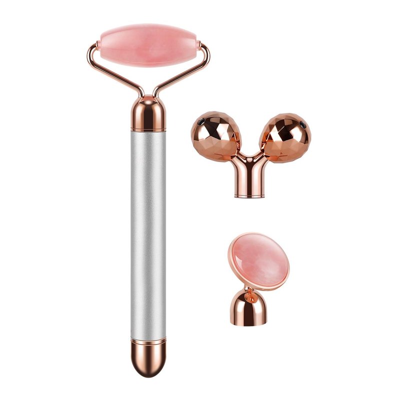 3-IN-1 Electric Jade Roller 3D Roller Facial Roller & Face Massager, Rose Quartz