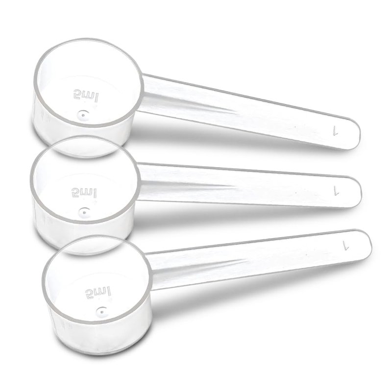 - COMES IN QUANTITY OF 3 - Multiple plastic teaspoon scoops with the same capacity to use in different canisters without switching. Our mini measuring spoons are sufficient, allowing you to use them alternately. Our 5ml scoops are enough for the basic kitchen.
